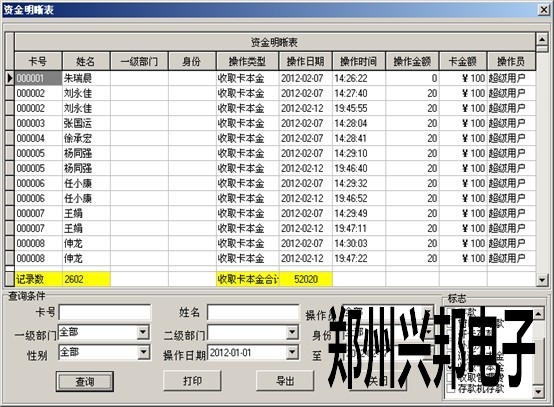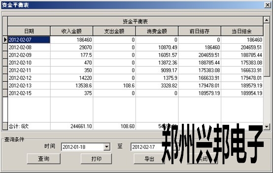 3.數(shù)據(jù)管理-資金明細(xì)表中可以根據(jù)標(biāo)志‘收取卡本金’查詢出收取卡本金合計(jì):52020元,189954.19-52020=137934.19元