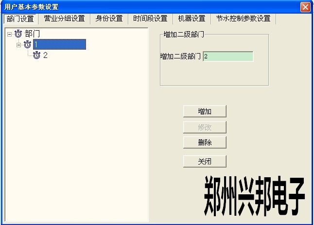 打開485售飯機軟件--系統(tǒng)管理--用戶參數(shù)設(shè)置--用戶基本參數(shù)設(shè)置--部門,打開后點擊部門,可以添加一級部門,然后再把光標點到一級部門上,此時可以添加二級部門,如下圖所示