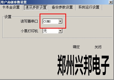 解決方法:經(jīng)詢問,電腦重裝過軟件,重裝后讀卡就出現(xiàn)這個錯誤了,軟件重裝后要重新設置讀卡器的端口,設置讀卡器端口是在軟件中的  系統(tǒng)管理-用戶參數(shù)設置-用戶高級參數(shù)設置-通訊參數(shù)設置-讀寫器串口中,如下圖所示: