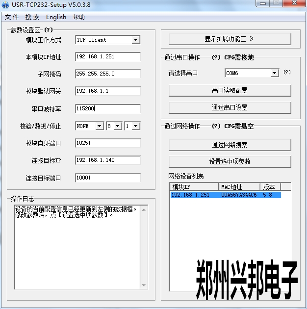 5、模塊自身端口取所填本地ip地址的最后一空的數(shù)字,比如所填IP為192.168.1.251那么該端口就是10251。