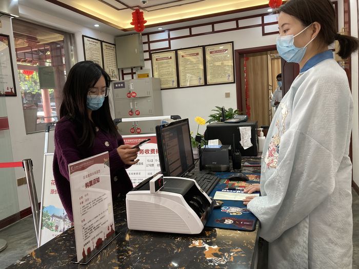 亳州市花戲樓景區售票處,江蘇游客正在刷社保卡購買門票。 劉景俠攝